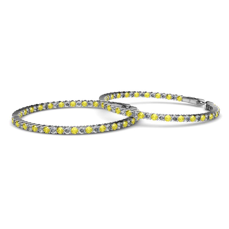 1.80 mm Round Yellow Sapphire and Lab Grown Diamond 2 1/2 ctw Common Prong Inside-Out Womens Hoop Earrings 14K White Gold More Details ...