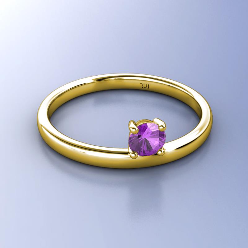 5.00 mm Round Amethyst 0.40 ct Womens Solitaire Asymmetrical Stackable Ring 14K Yellow Gold More Details ...