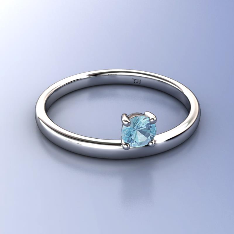 This fun and modern design showcases center Aquamarine set asymmetrically to the side of band, perfect to stack with other bands or simply be worn alone to add sparkle.