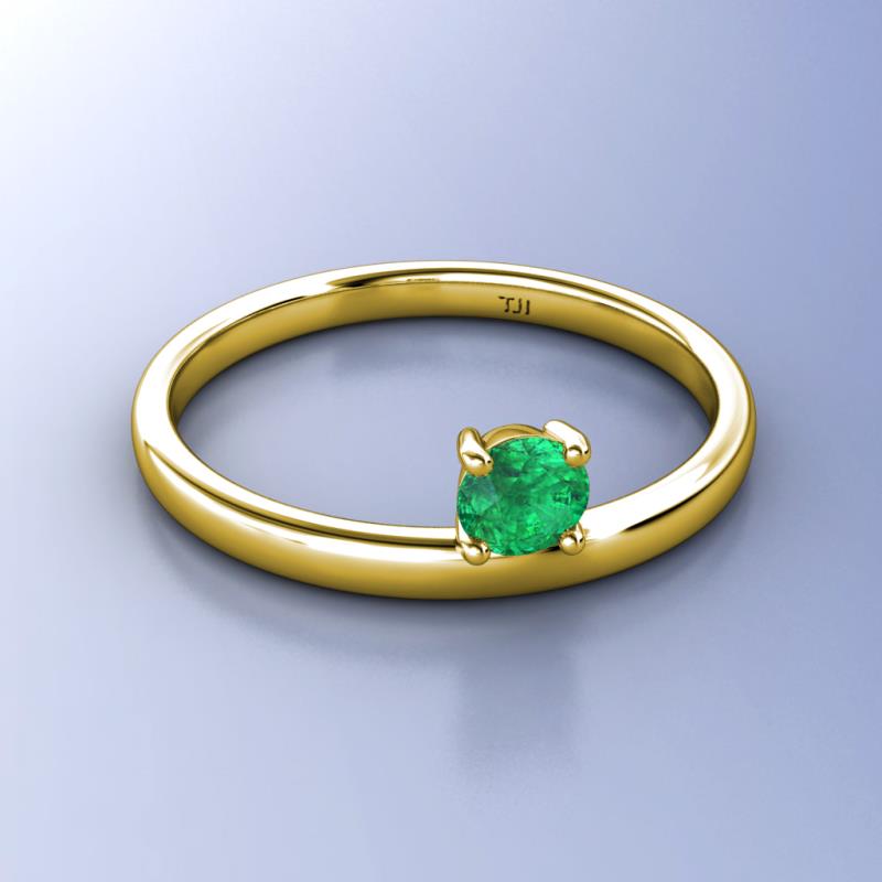 5.00 mm Round Emerald 0.40 ct Womens Solitaire Asymmetrical Stackable Ring 10K Yellow Gold More Details ...