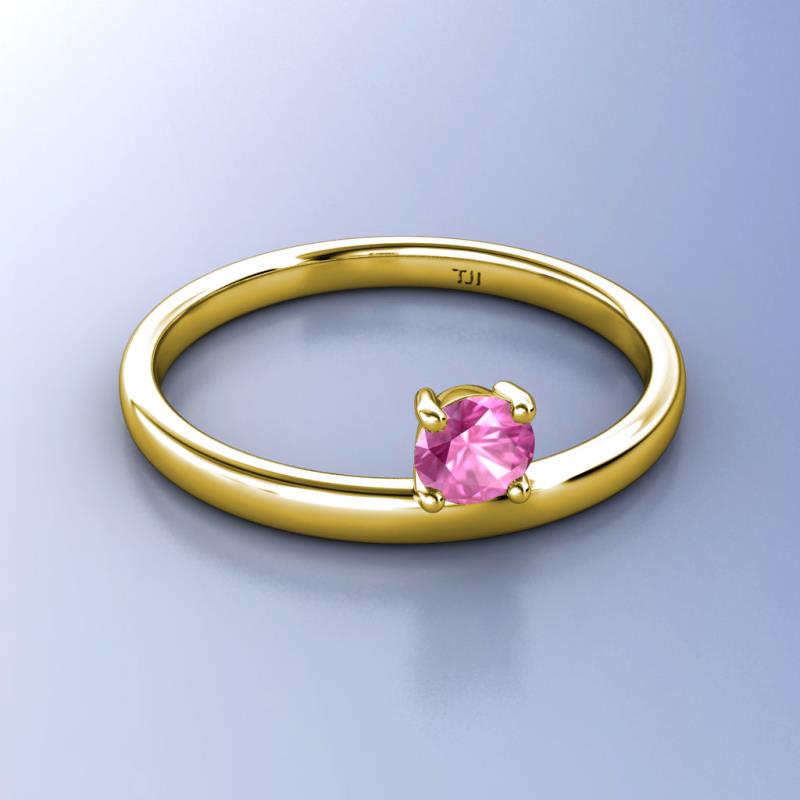 5.00 mm Round Lab Created Pink Sapphire 0.53 ct Womens Solitaire Asymmetrical Stackable Ring 14K Yellow Gold More Details ...