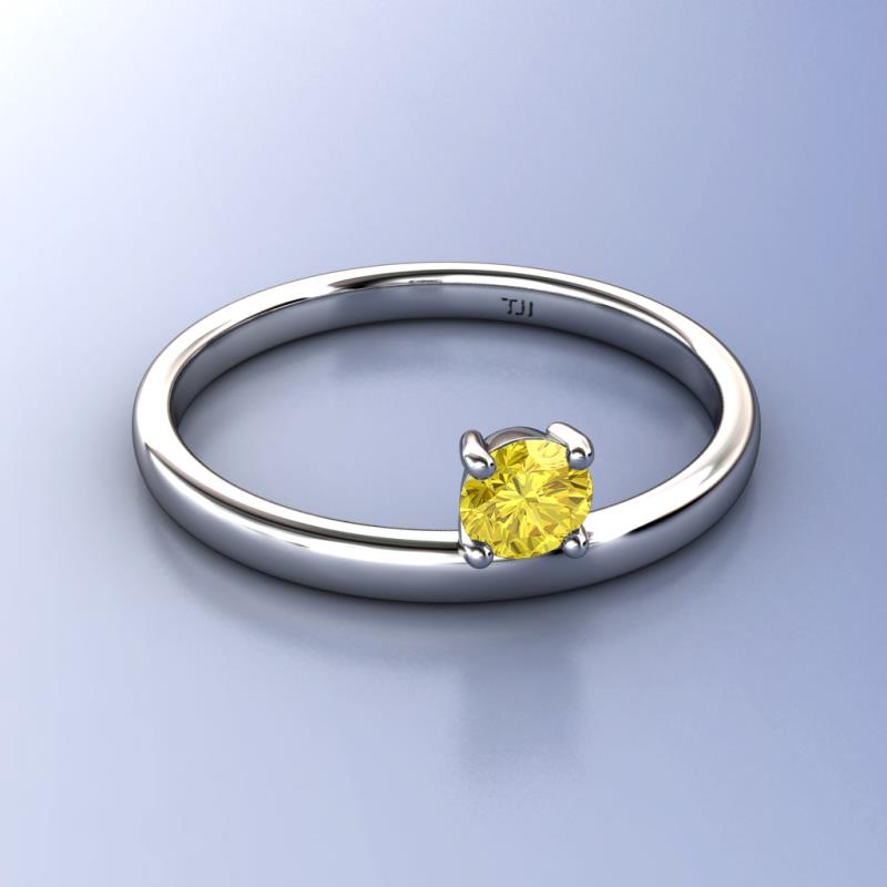 This fun and modern design showcases center Lab Created Yellow Sapphire set asymmetrically to the side of band, perfect to stack with other bands or simply be worn alone to add sparkle.