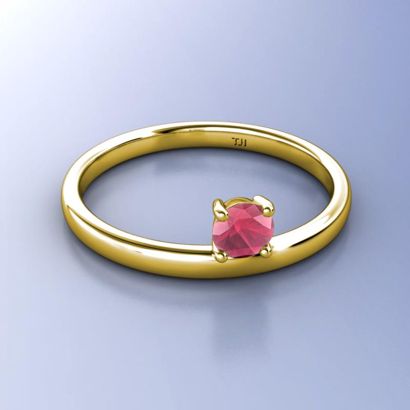 5.00 mm Round Rhodolite Garnet 0.50 ct Womens Solitaire Asymmetrical Stackable Ring 10K Yellow Gold More Details ...
