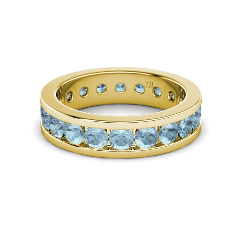Round Aquamarine 2.66 ctw Channel Set Womens Eternity Ring Stackable 18K Yellow Gold More Details ...