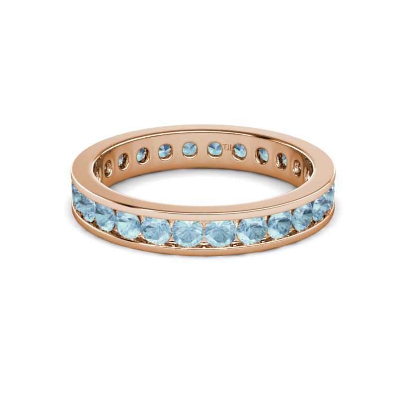 Round Aquamarine 1.27 ctw Channel Set Womens Eternity Ring Stackable 18K Rose Gold More Details ...