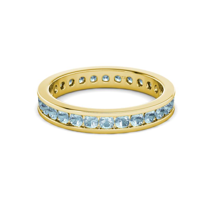 Round Aquamarine 0.88 ctw Channel Set Womens Eternity Ring Stackable 10K Yellow Gold More Details ...
