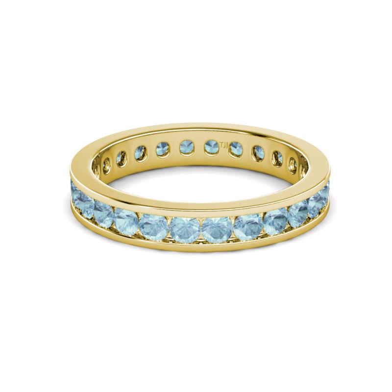 Round Aquamarine 1.27 ctw Channel Set Womens Eternity Ring Stackable 10K Yellow Gold More Details ...