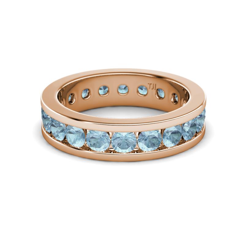Round Aquamarine 2.66 ctw Channel Set Womens Eternity Ring Stackable 10K Rose Gold More Details ...
