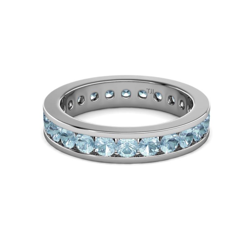 Round Aquamarine 1.68 ctw Channel Set Womens Eternity Ring Stackable Sterling Silver More Details ...