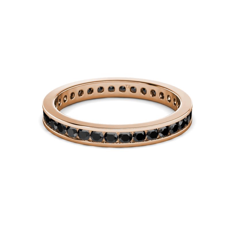 Round Black Diamond 0.95 ctw Channel Set Womens Eternity Ring Stackable 14K Rose Gold More Details ...