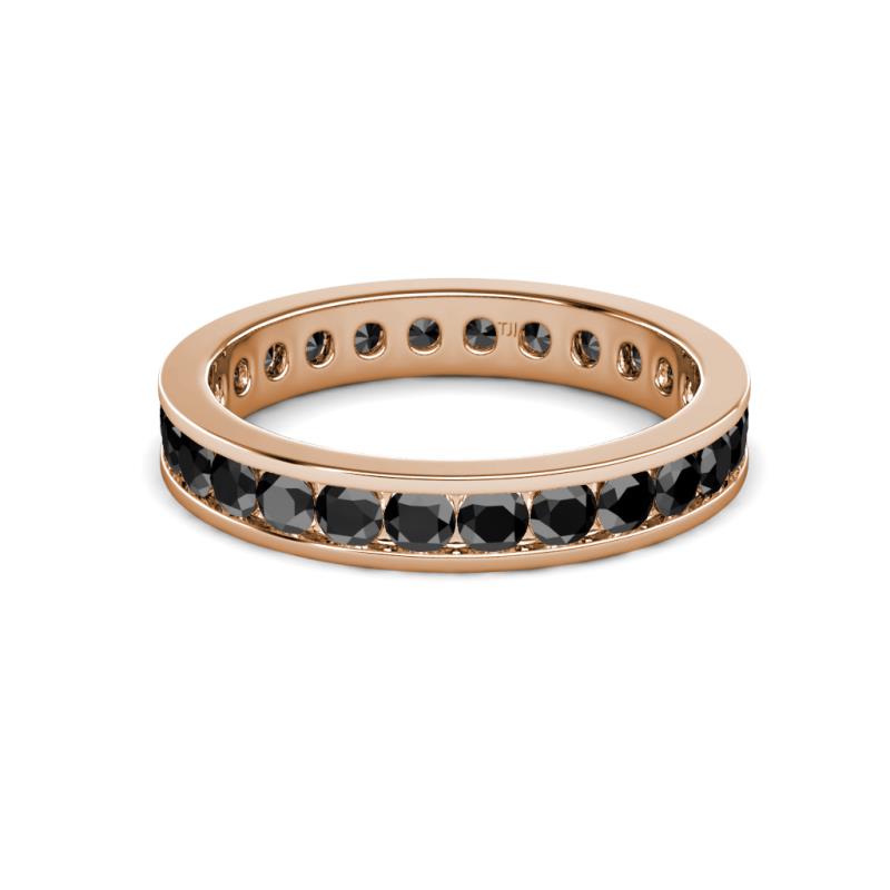 Round Black Diamond 1.69 ctw Channel Set Womens Eternity Ring Stackable 18K Rose Gold More Details ...