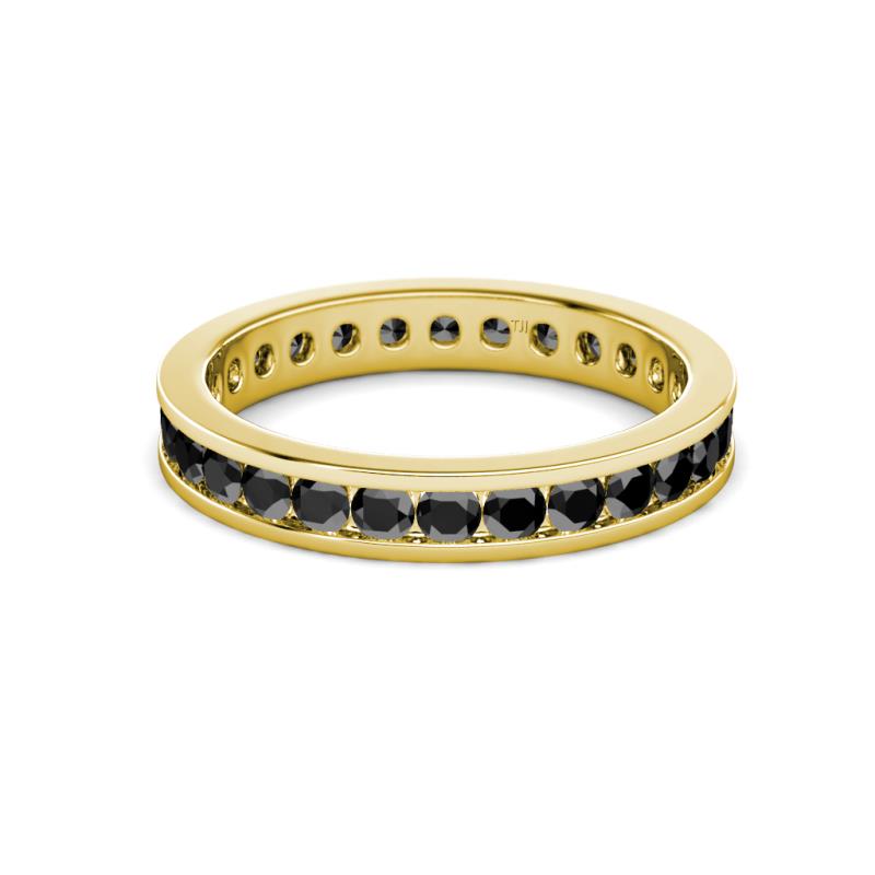 Round Black Diamond 1.31 ctw Channel Set Womens Eternity Ring Stackable 10K Yellow Gold More Details ...