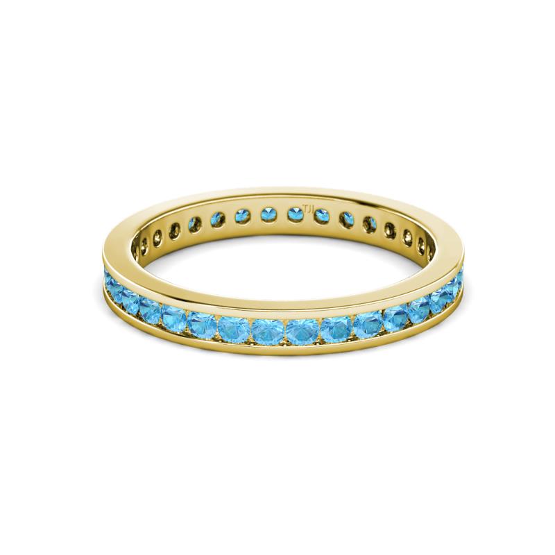 Round Blue Topaz 0.75 ctw Channel Set Womens Eternity Ring Stackable 10K Yellow Gold More Details ...