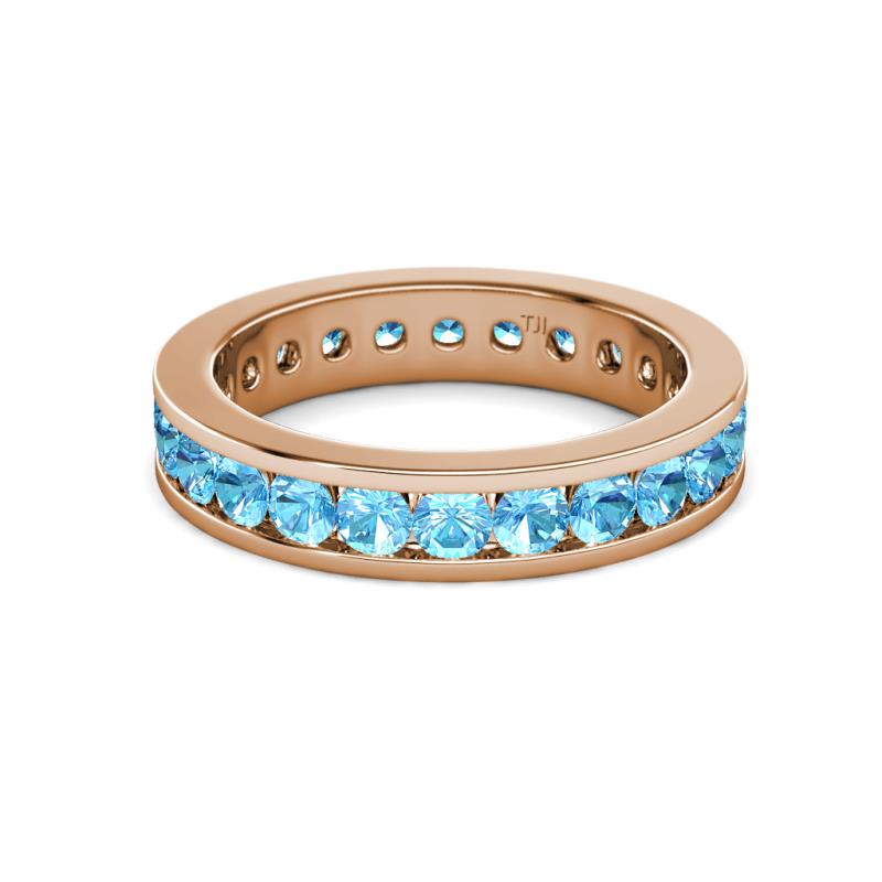 Round Blue Topaz 1.89 ctw Channel Set Womens Eternity Ring Stackable 10K Rose Gold More Details ...