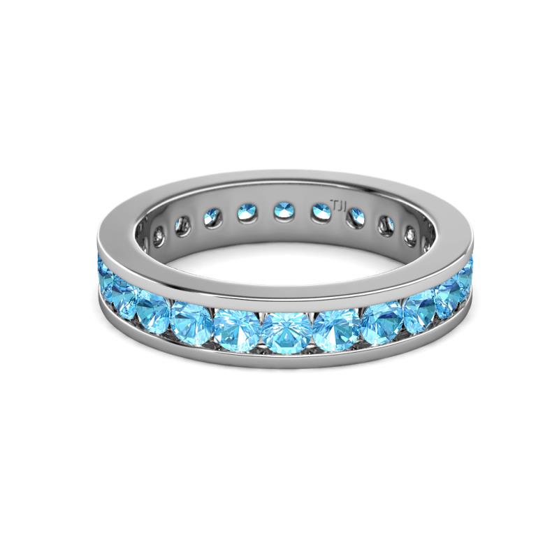 Beautiful to behold,this 1.89 ctw Eternity Band is a timeless appeal of your ever lasting Love fully Channel Set with Blue Topaz in an Eternity Style making it look more elegant. *As per ring size the stone and carat total weight changes.