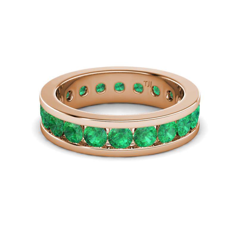 Round Emerald 2.66 ctw Channel Set Womens Eternity Ring Stackable 18K Rose Gold More Details ...