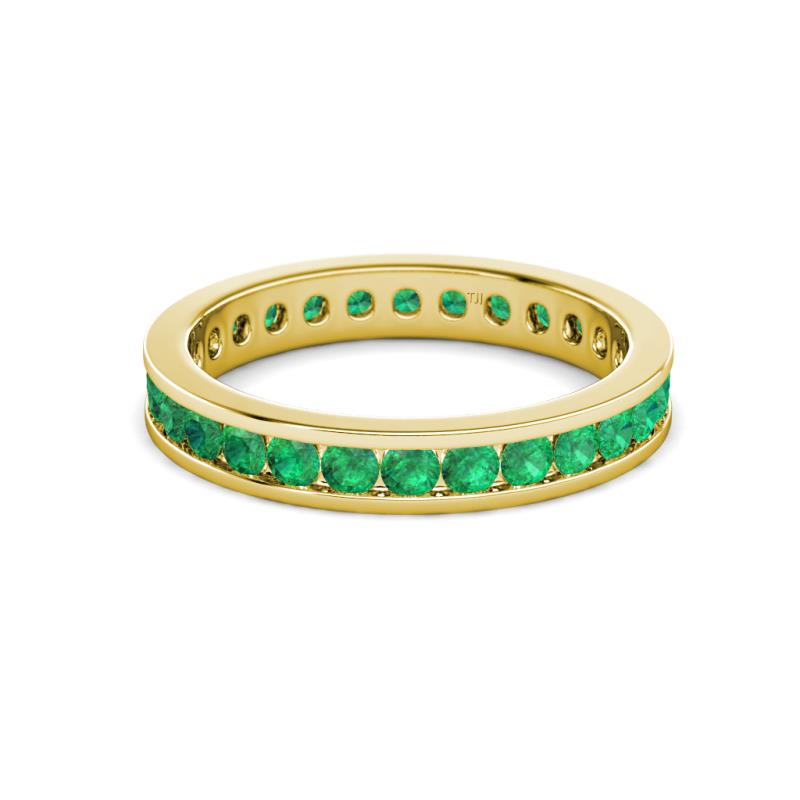 Round Emerald 0.88 ctw Channel Set Womens Eternity Ring Stackable 10K Yellow Gold More Details ...