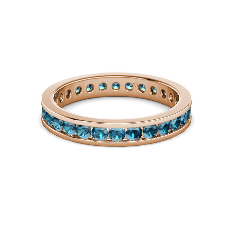 Round London Blue Topaz 1.25 ctw Channel Set Womens Eternity Ring Stackable 18K Rose Gold More Details ...