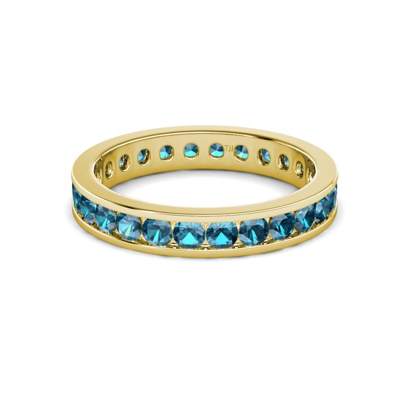 Round London Blue Topaz 1.61 ctw Channel Set Womens Eternity Ring Stackable 14K Yellow Gold More Details ...