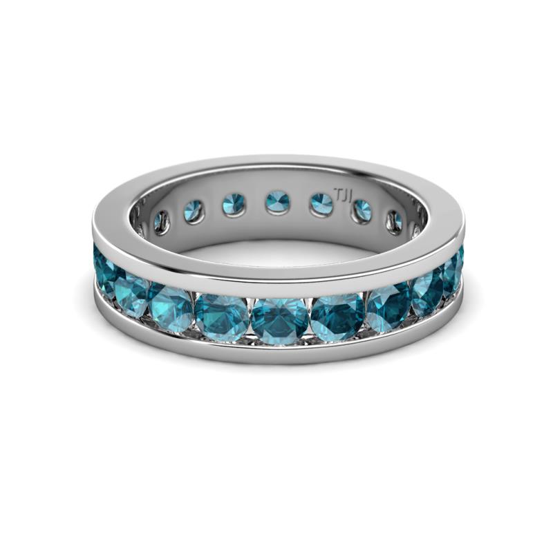 Round London Blue Topaz 2.66 ctw Channel Set Womens Eternity Ring Stackable 10K White Gold More Details ...