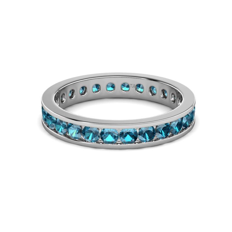 Round London Blue Topaz 1.61 ctw Channel Set Womens Eternity Ring Stackable Platinum More Details ...