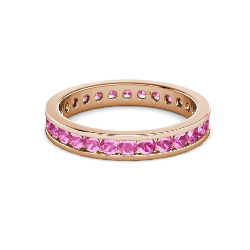 Round Pink Sapphire 1.31 ctw Channel Set Womens Eternity Ring Stackable 18K Rose Gold More Details ...