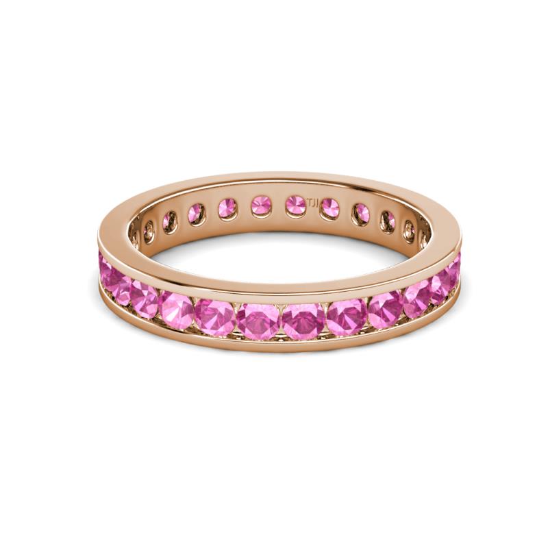 Round Pink Sapphire 1.69 ctw Channel Set Womens Eternity Ring Stackable 18K Rose Gold More Details ...