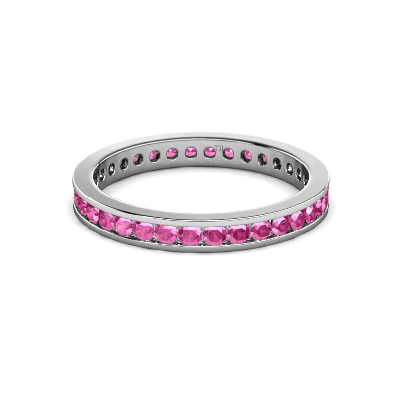 Round Pink Sapphire 0.95 ctw Channel Set Womens Eternity Ring Stackable 10K White Gold More Details ...
