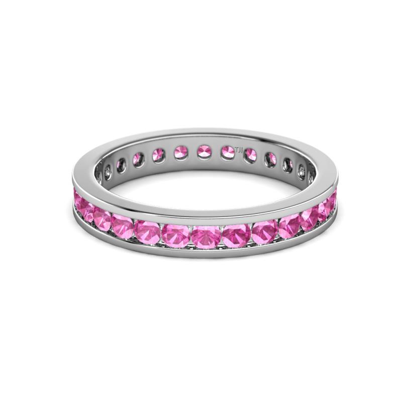 Beautiful to behold,this 1.31 ctw Eternity Band is a timeless appeal of your ever lasting Love fully Channel Set with Pink Sapphire in an Eternity Style making it look more elegant. *As per ring size the stone and carat total weight changes.