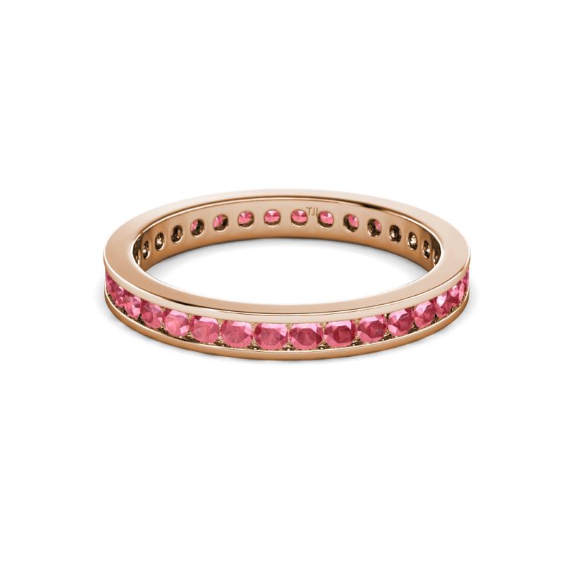 Round Pink Tourmaline 0.66 ctw Channel Set Womens Eternity Ring Stackable 10K Rose Gold More Details ...