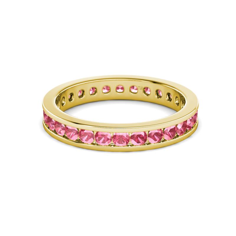 Round Pink Tourmaline 0.88 ctw Channel Set Womens Eternity Ring Stackable 10K Yellow Gold More Details ...