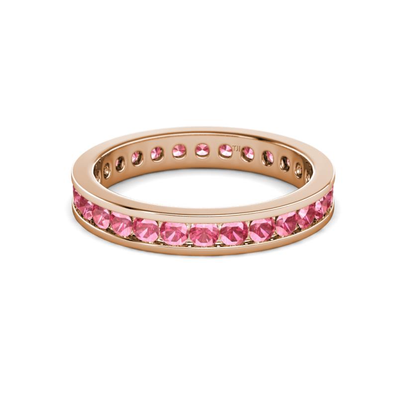 Beautiful to behold,this 0.88 ctw Eternity Band is a timeless appeal of your ever lasting Love fully Channel Set with Pink Tourmaline in an Eternity Style making it look more elegant. *As per ring size the stone and carat total weight changes.