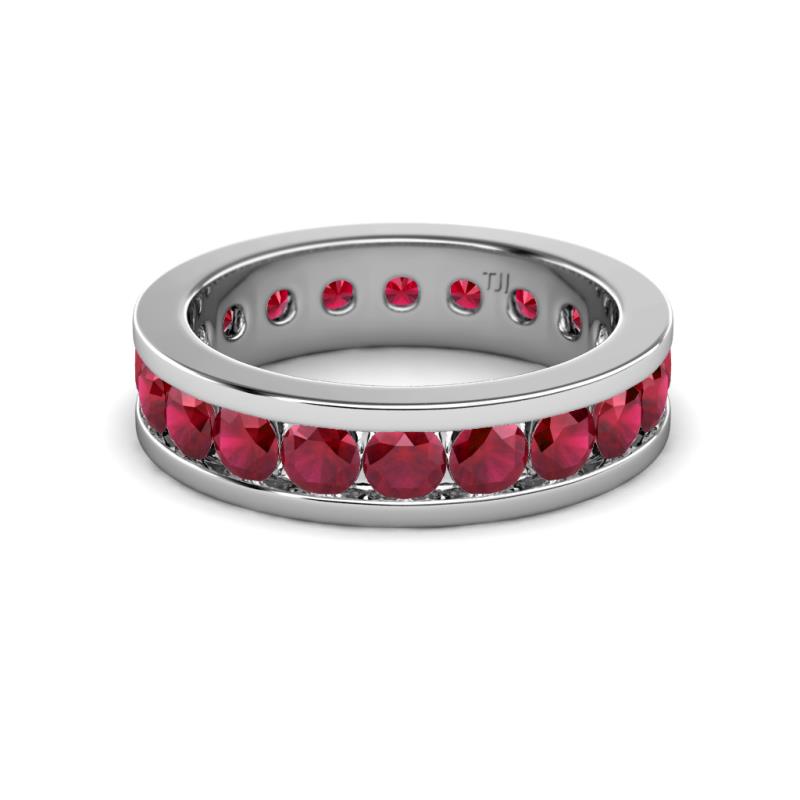 Beautiful to behold,this 2.99 ctw Eternity Band is a timeless appeal of your ever lasting Love fully Channel Set with Ruby in an Eternity Style making it look more elegant. *As per ring size the stone and carat total weight changes.