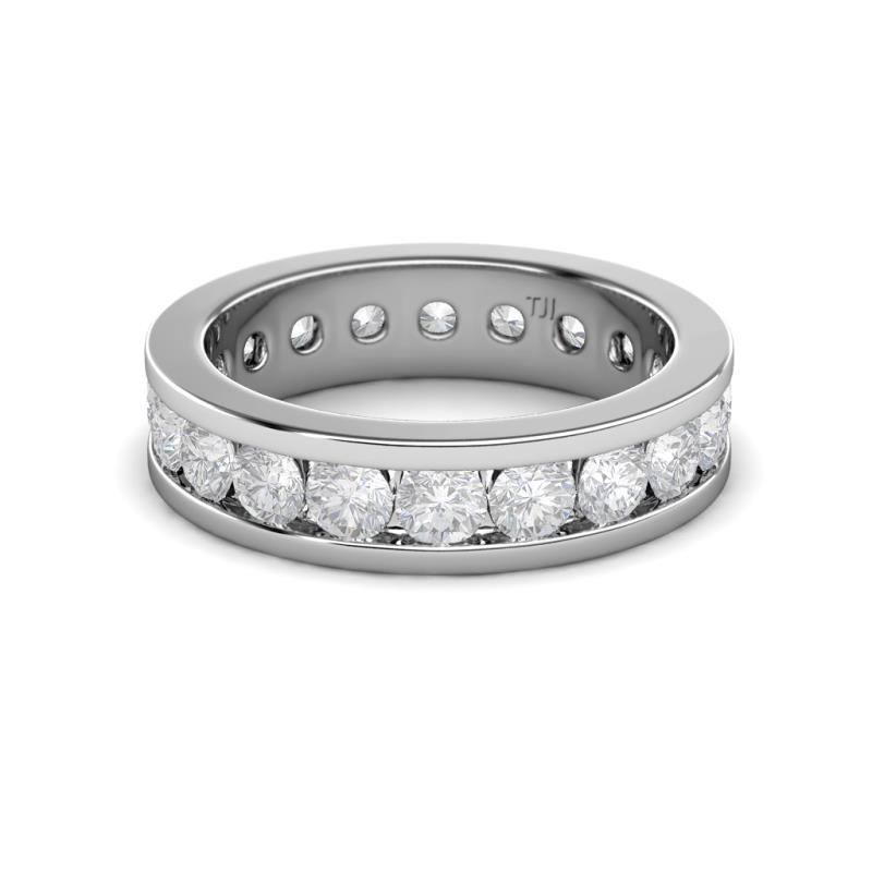 Beautiful to behold,this 2.99 ctw Eternity Band is a timeless appeal of your ever lasting Love fully Channel Set with White Sapphire in an Eternity Style making it look more elegant. *As per ring size the stone and carat total weight changes.