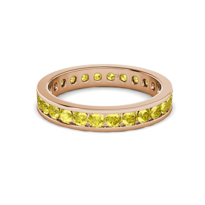 Round Yellow Sapphire 1.69 ctw Channel Set Womens Eternity Ring Stackable 18K Rose Gold More Details ...
