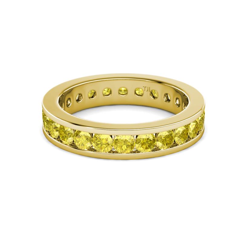 Beautiful to behold,this 2.21 ctw Eternity Band is a timeless appeal of your ever lasting Love fully Channel Set with Yellow Sapphire in an Eternity Style making it look more elegant. *As per ring size the stone and carat total weight changes.