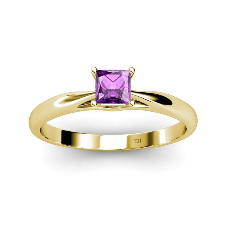 Princess Cut (5.5 mm) Amethyst Womens Solitaire Engagement Ring 0.85 ct 14K Yellow Gold More Details ...