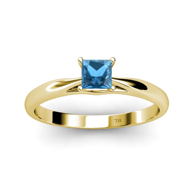 Princess Cut (5.5 mm) Blue Topaz Womens Solitaire Engagement Ring 0.90 ct 18K Yellow Gold More Details ...