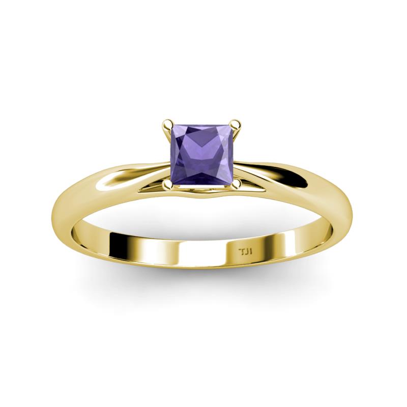 Princess Cut (5.5 mm) Iolite Womens Solitaire Engagement Ring 0.85 ct 18K Yellow Gold More Details ...
