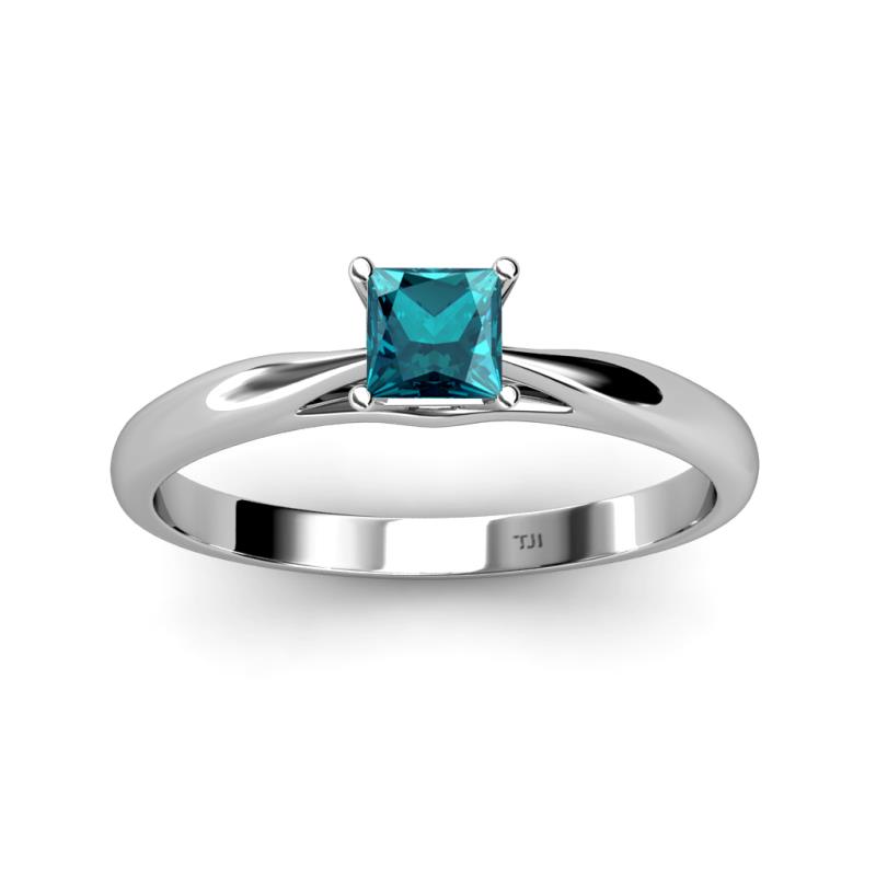 Princess Cut (5.5 mm) London Blue Topaz Womens Solitaire Engagement Ring 0.85 ct 18K White Gold More Details ...