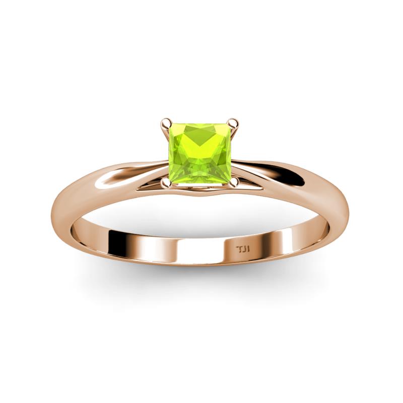 Princess Cut (5.5 mm) Peridot Womens Solitaire Engagement Ring 0.95 ct 14K Rose Gold More Details ...