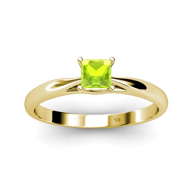 Princess Cut (5.5 mm) Peridot Womens Solitaire Engagement Ring 0.95 ct 18K Yellow Gold More Details ...