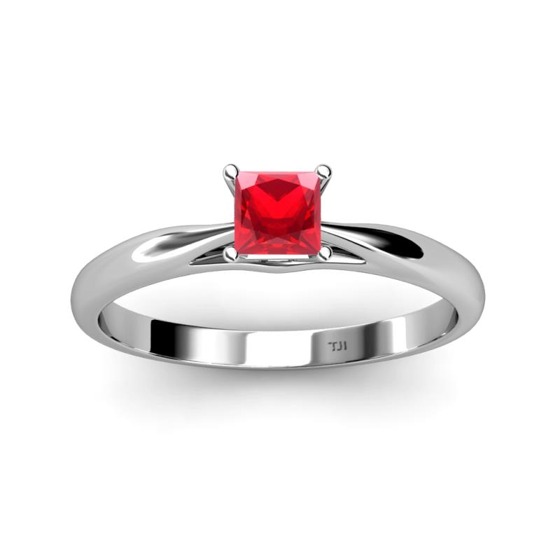 Princess Cut (5.5 mm) Red Garnet Womens Solitaire Engagement Ring 0.95 ct 14K White Gold More Details ...