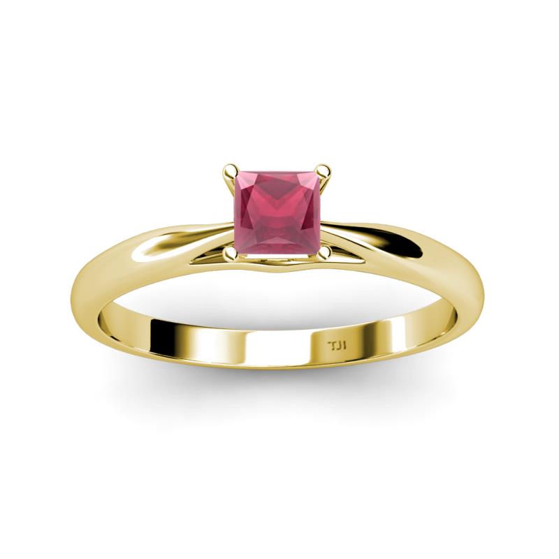 Princess Cut (5.5 mm) Rhodolite Garnet Womens Solitaire Engagement Ring 0.95 ct 18K Yellow Gold More Details ...