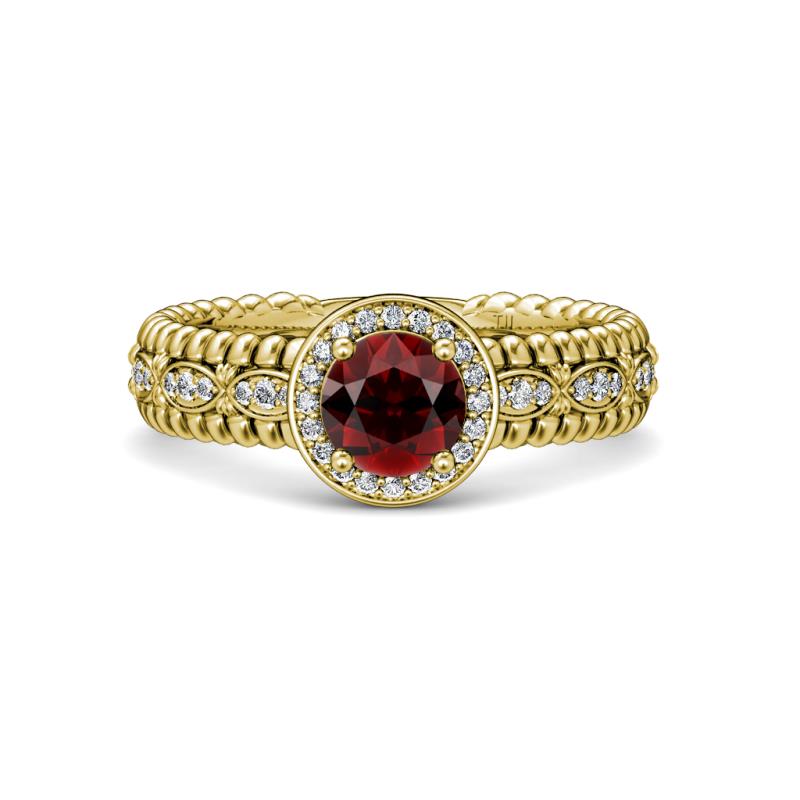 1 1/3 ctw Round Red Garnet and Diamond Marquise Shank Womens Halo Engagement Ring 14K Yellow Gold More Details ...