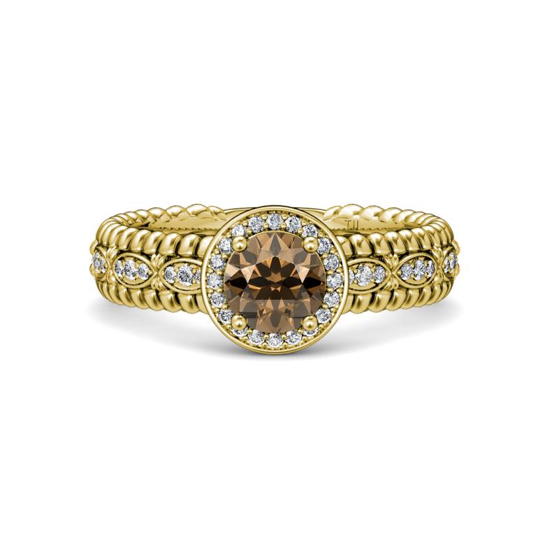 1 1/4 ctw Round Smoky Quartz and Diamond Marquise Shank Womens Halo Engagement Ring 14K Yellow Gold More Details ...