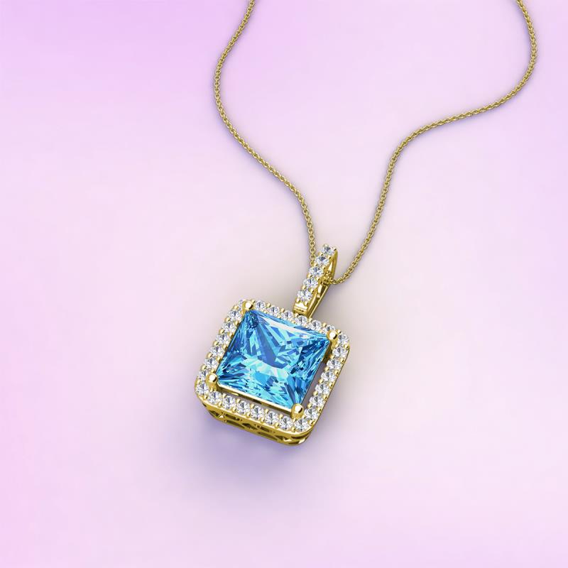 Princess Cut Blue Topaz and Round Diamond 1.88 ctw Womens Halo Pendant Necklace 14K Yellow Gold. Included 16 Inches 14K Yellow Gold Chain More Details ...