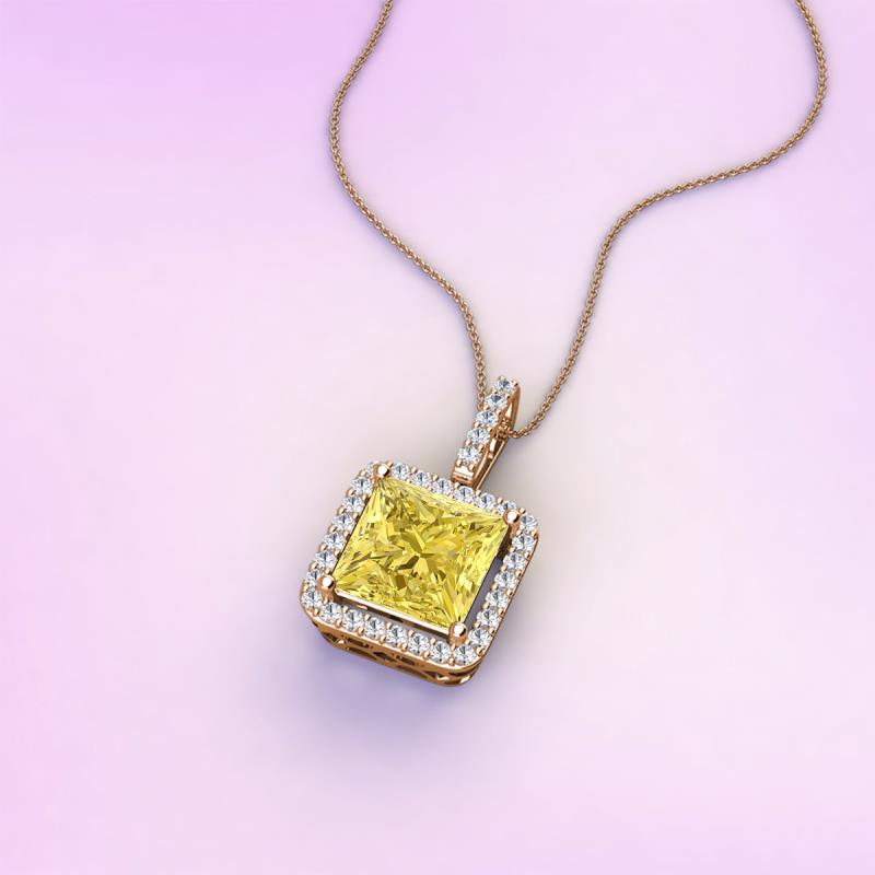 Princess Cut Lab Created Yellow Sapphire and Round Diamond 2.03 ctw Womens Halo Pendant Necklace 14K Rose Gold. Included 16 Inches 14K Rose Gold Cha More Details ...