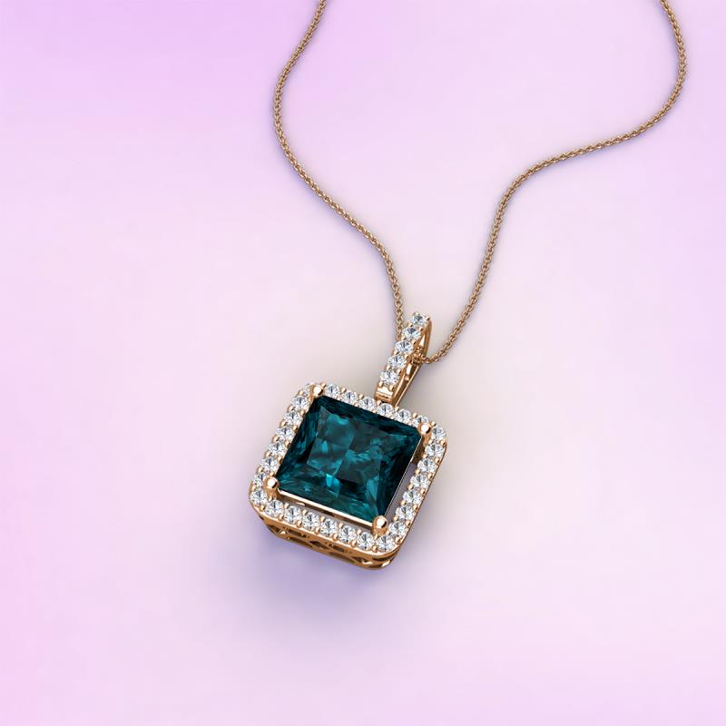 Princess Cut London Blue Topaz and Round Diamond 2.03 ctw Womens Halo Pendant Necklace 18K Rose Gold. Included 16 Inches 18K Rose Gold Chain More Details ...