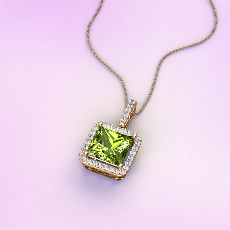 Princess Cut Peridot and Round Diamond 1.88 ctw Womens Halo Pendant Necklace 14K Rose Gold. Included 16 Inches 14K Rose Gold Chain More Details ...